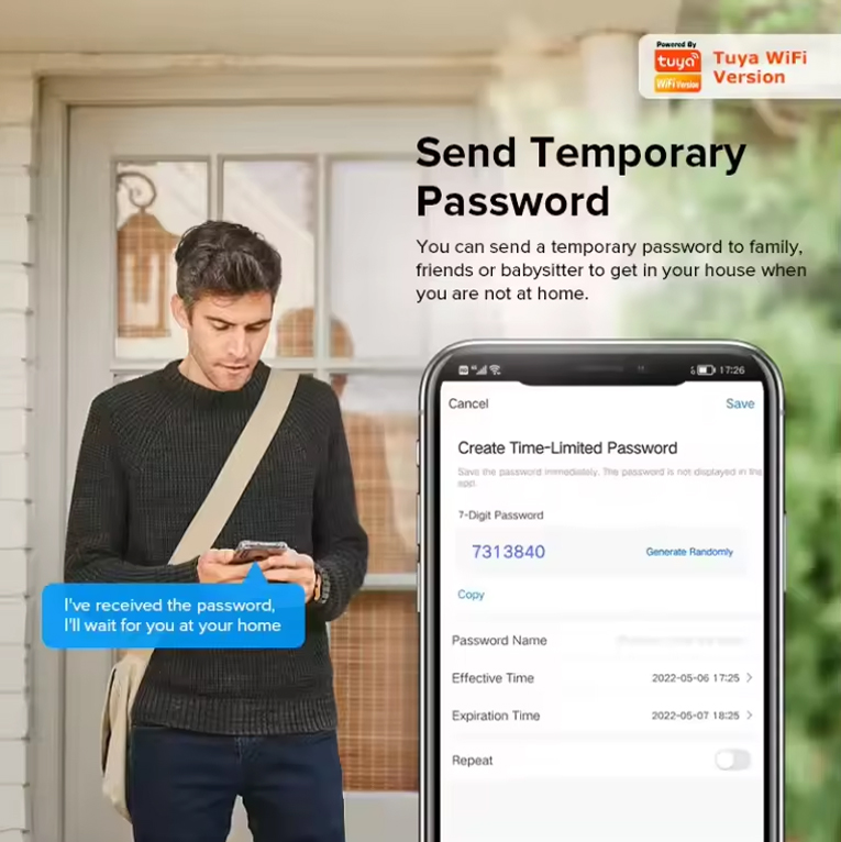 Con tecnología TUYA Wi-Fi, cuando alguien toca la puerta: