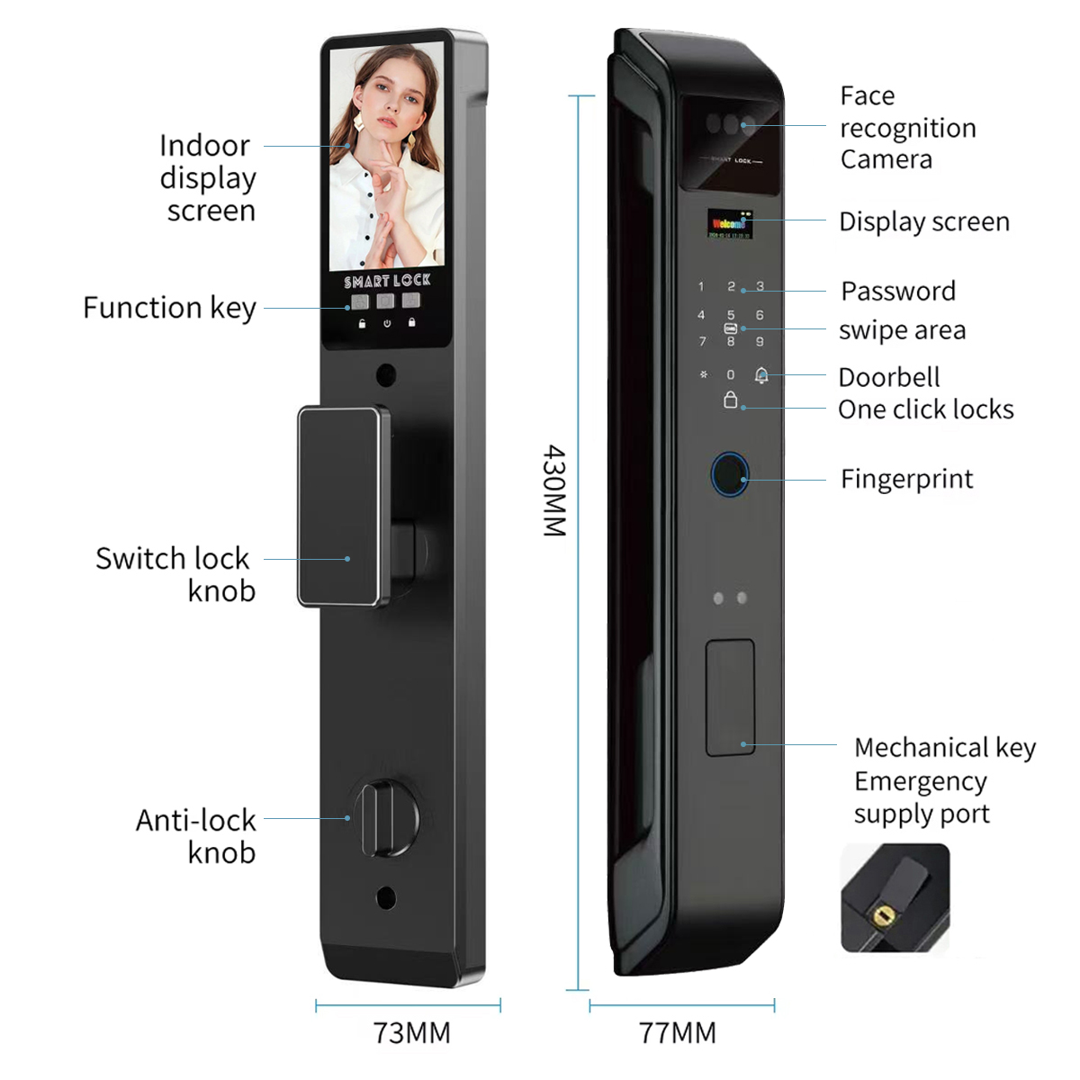 La K30 Intercom es una cerradura inteligente de nueva generación equipada con pantalla HD, videointercom TUYA, apertura remota y 6 formas de desbloqueo, diseñada para hogares modernos, oficinas, alquileres temporarios y empresas que buscan control total desde el celular 📲🏠