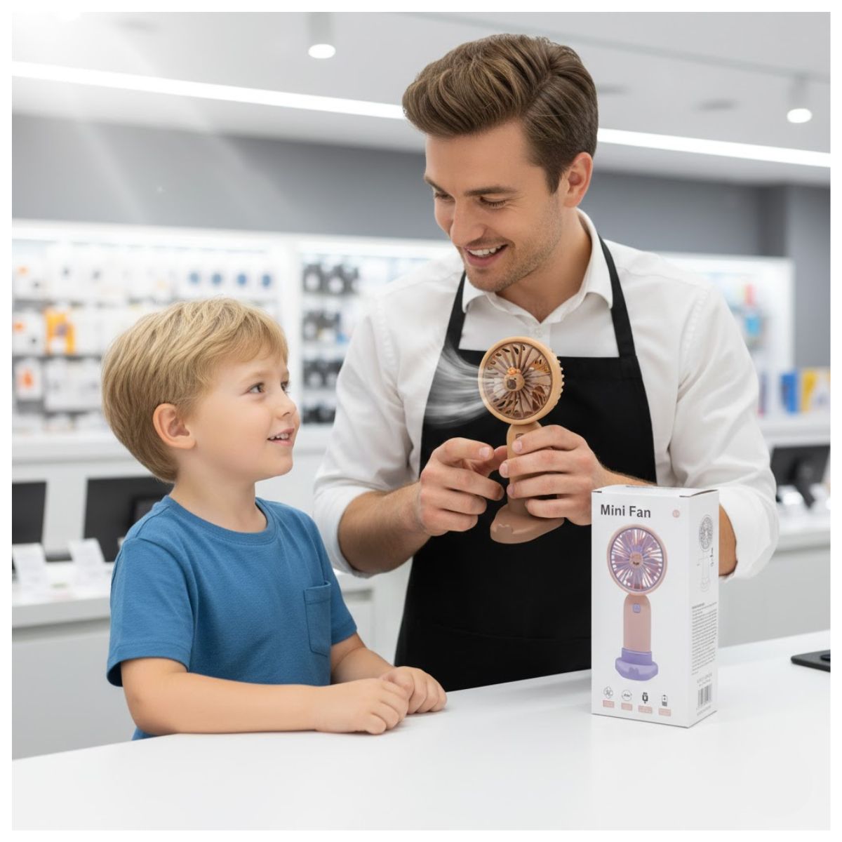 - Fácil de Sostener y Transportar: Con un diseño compacto y fácil de sostener, este mini ventilador eléctrico se adapta perfectamente a tus necesidades, ya sea en la oficina, en casa o en movimiento.